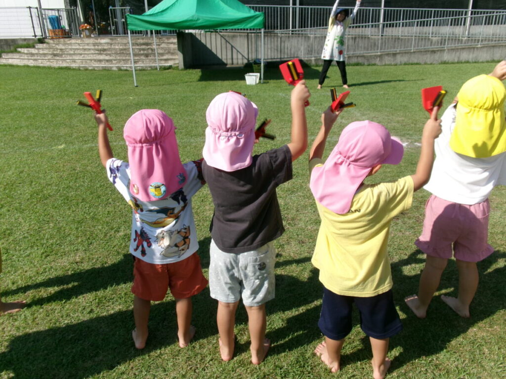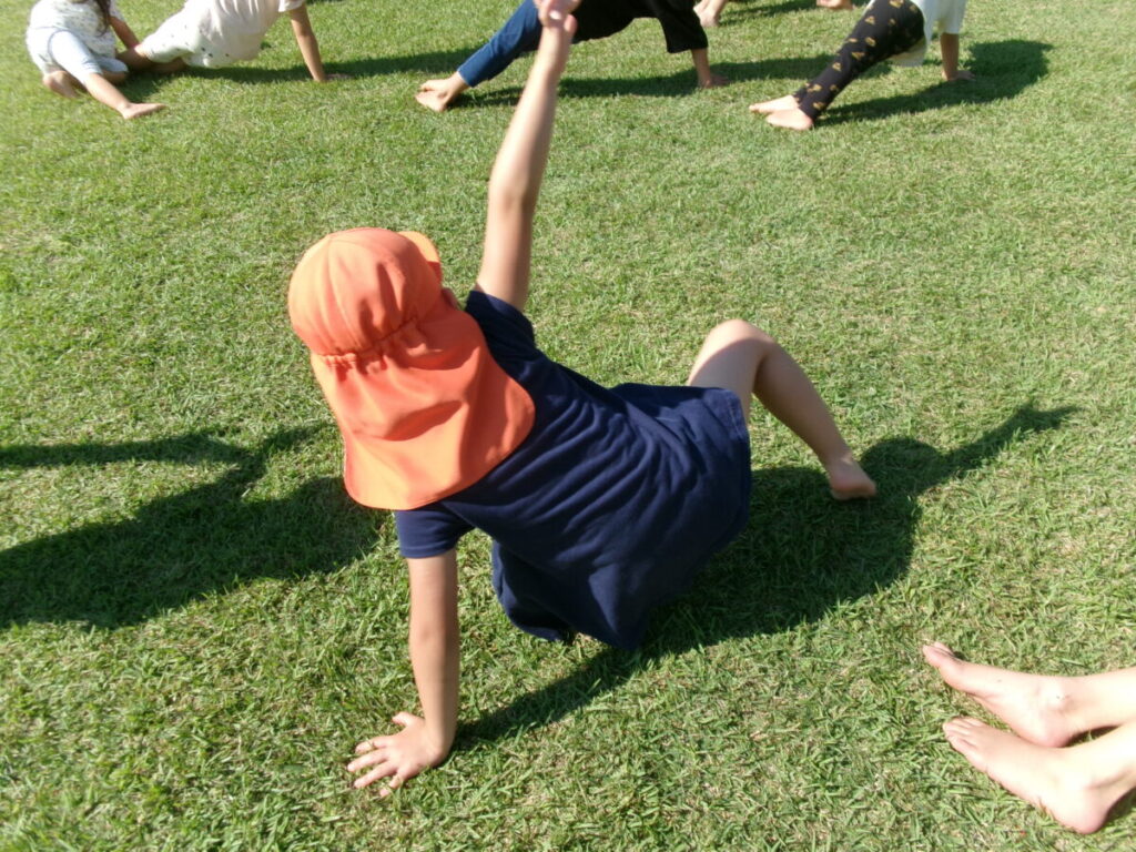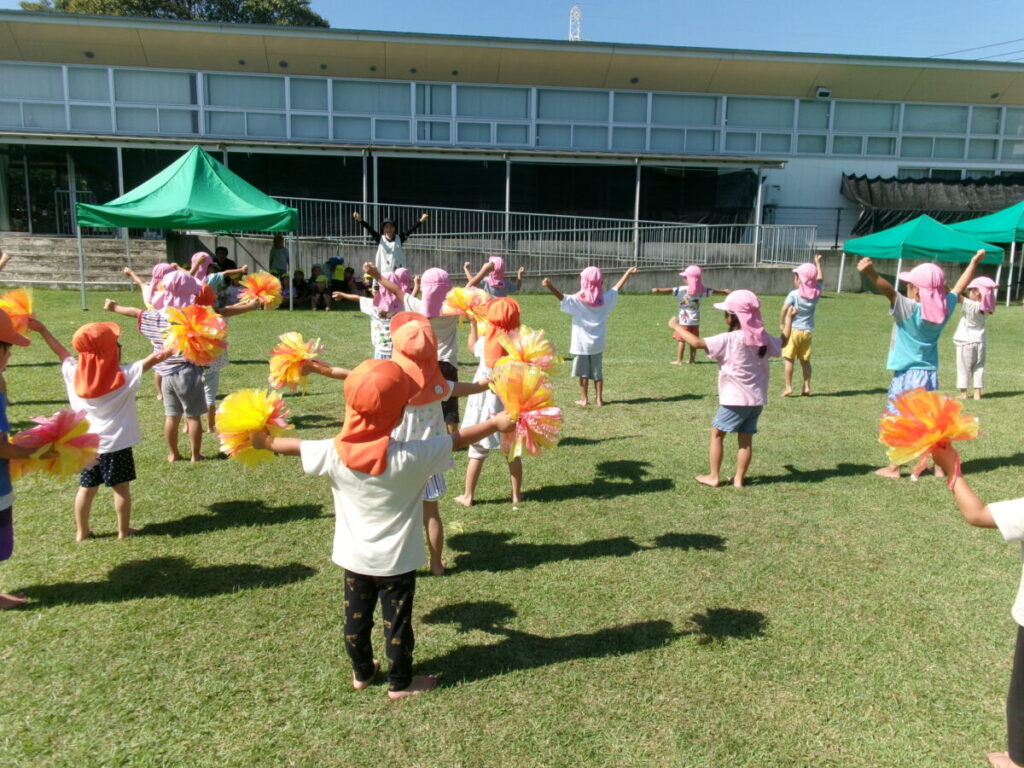 今日も運動会ごっこをしました。くじら組の千本桜ダンスと組体操、いるか組の鬼滅の刃のダンスをみんなでやりました。他クラスのダンスはとても新鮮で楽しく踊っていました♪組体操では、いるか、あしか組は出来ないことも多く「くじら組ってすごいねー」と言っていました。リレーでは、いるか組がアンカーを体験。最後に走ることをうれしそうに走るいるかさん!来年自分たちがすることを楽しみにしています!!思いっきり青空の下、運動会ごっこができました(^^♪