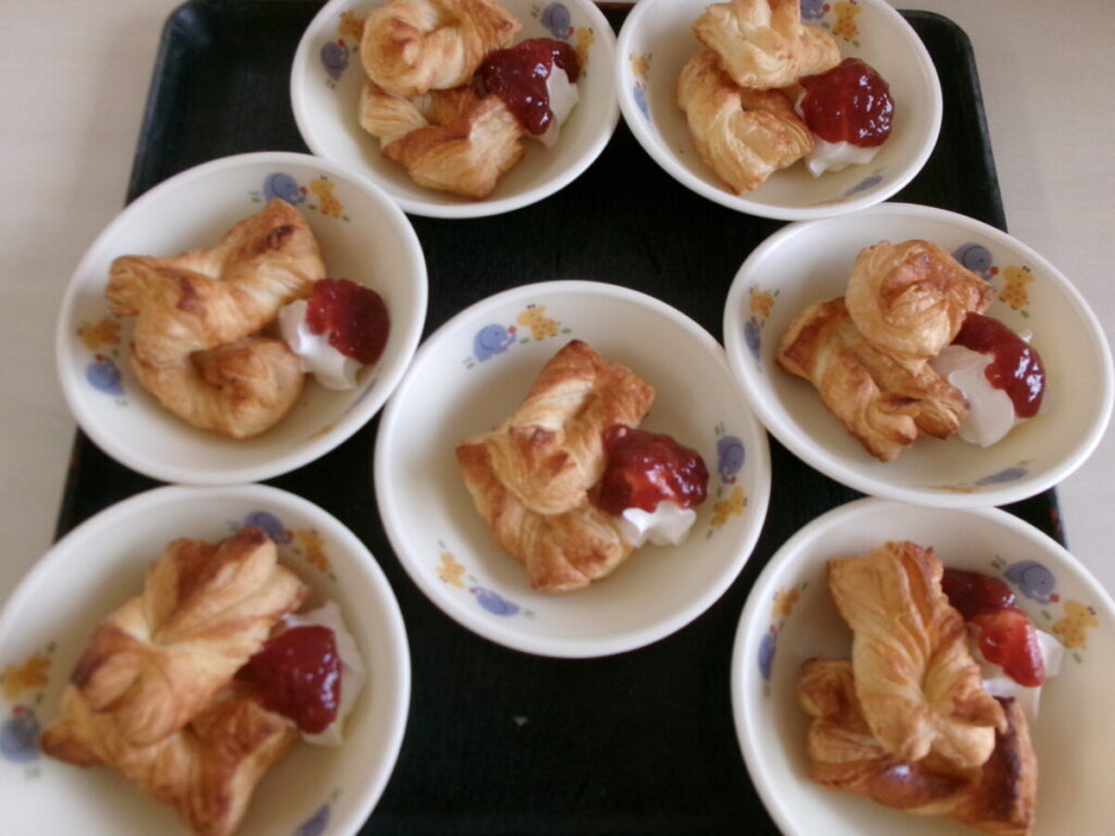 3時のおやつは『いちごジャムのミニパイ』さくさく生地をパリパリ食べます(^^♪「おいしい~♪」