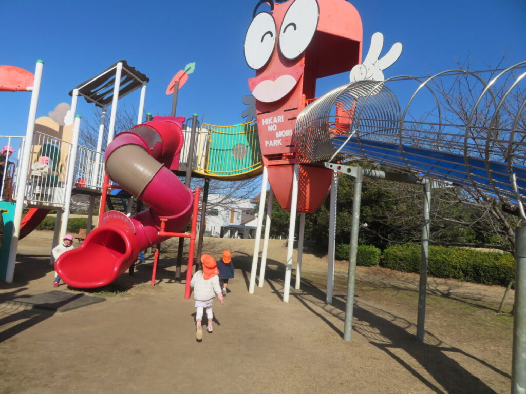 今日はひかりの森公園へ散歩に行きました。たくさん遊具がありそれぞれ好きな遊具へ行き遊びました。1番人気はローラーすべり台!何回も滑り楽しんでいましたよ♪その後、少し時間があったのでゆめタウンへ行き犬や猫を見にいくと「かわいい~」と興味津々でした。